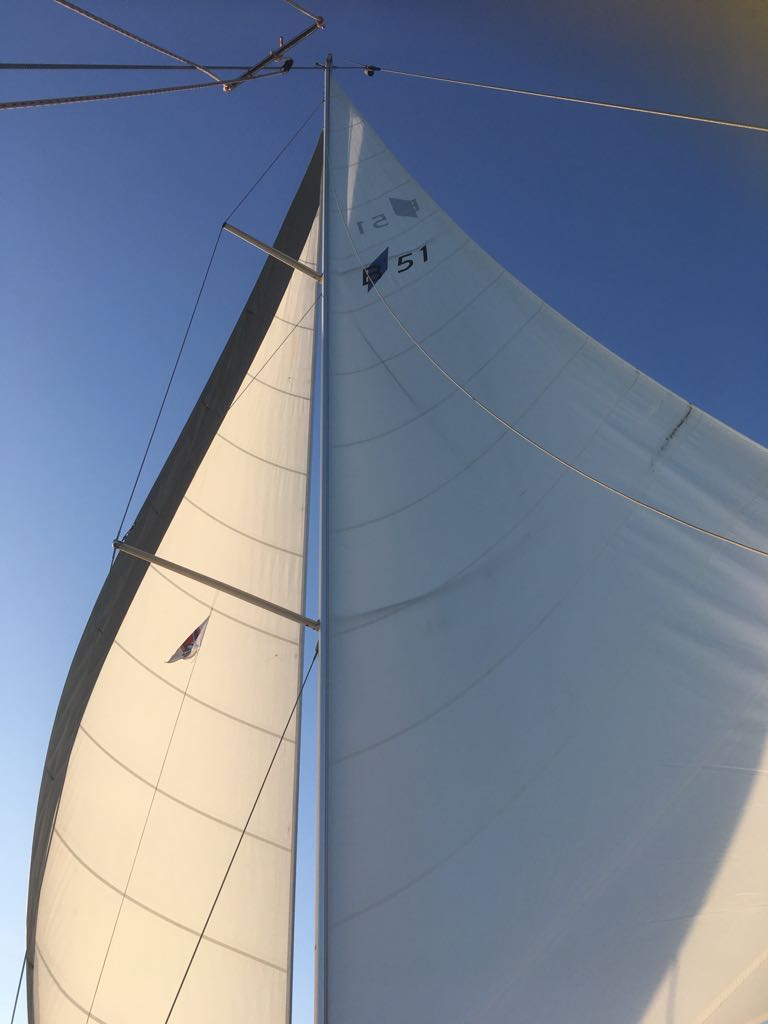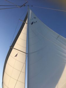 Es war einfach ein wirklich toller Segeltag. Zunächst hat der Skipper mit einigen von uns „Boje über Board Manöver“ geübt. Dann ging es aber raus auf See und in den Wind. Unsere Spitze war 9,2 Knoten und ca. 30 Grad Krängung. Segeln pur!