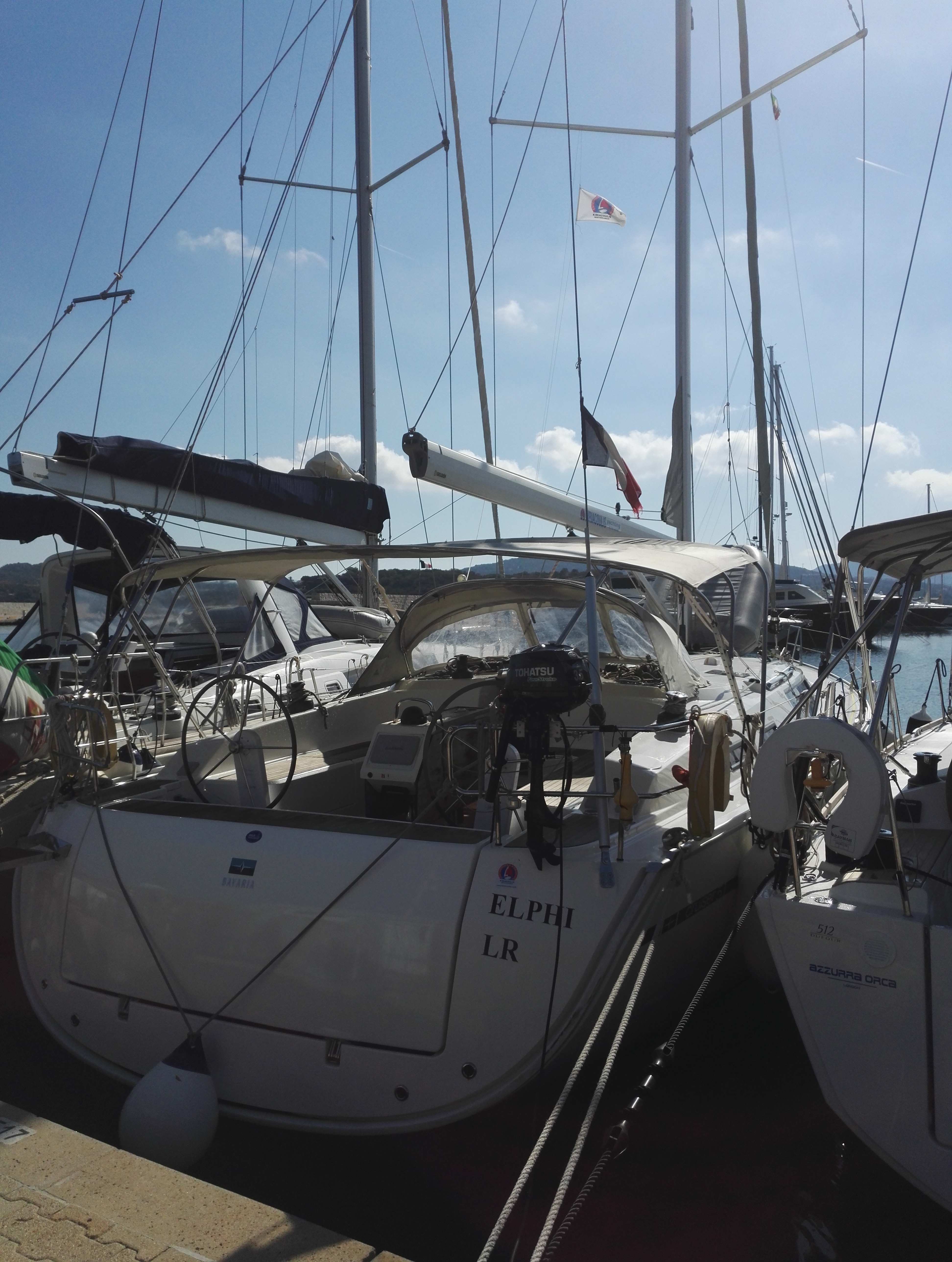 Dann noch ein paar kleine Besorgungen erledigt und schließlich ging es gegen Mittag mit dem Taxi zum Hafen von Portisco. Hier erwartete uns schon der Skipper mit der Nachricht, dass wir jetzt statt 7 Personen nun 8 sind und uns ein größeres Boot zugewiesen wurde: eine Bavaria Cruiser 51 mit fünf Kabinen.