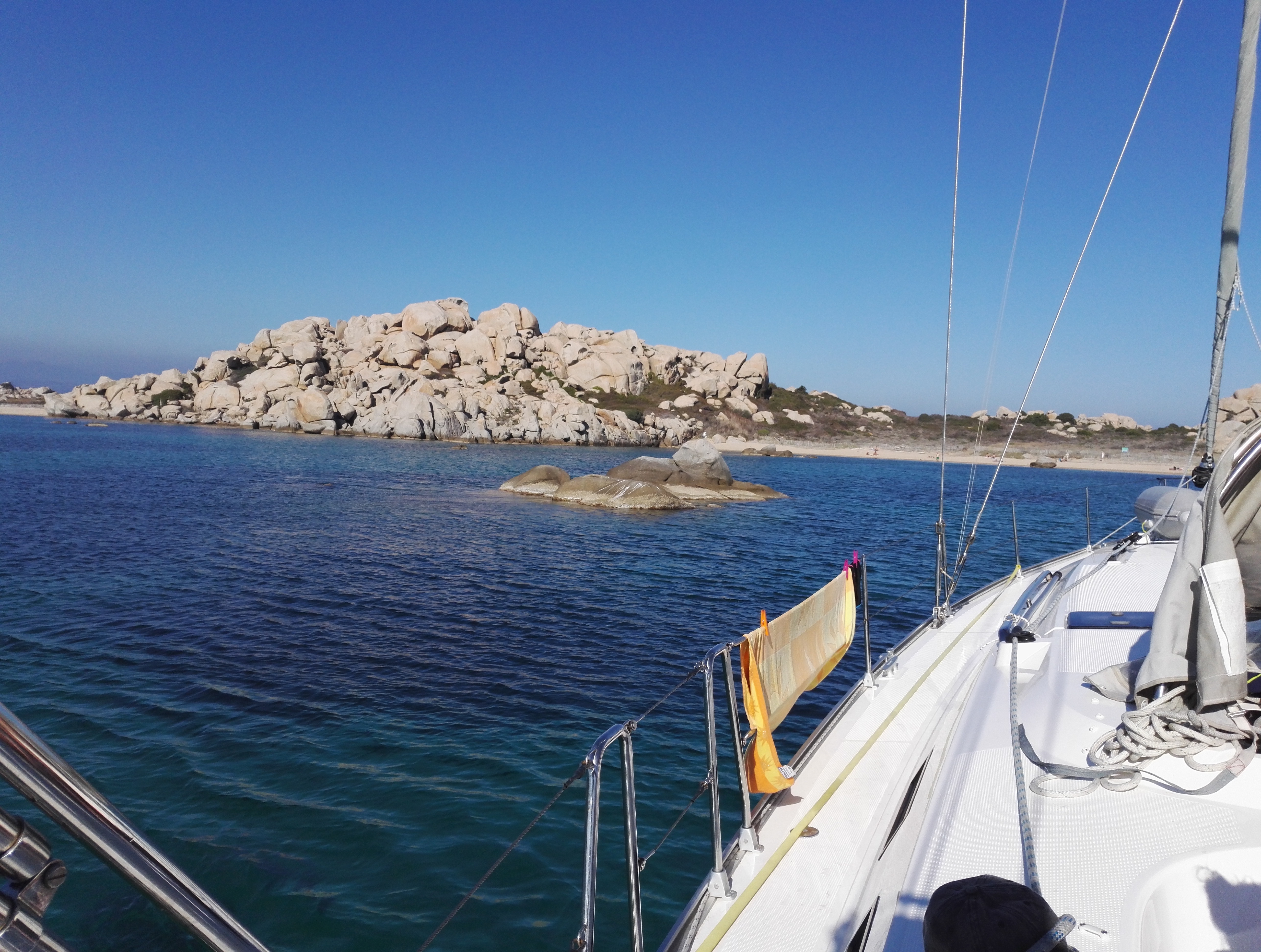 Heute morgen gab es zunächst einmal ein ausgiebiges Frühstück. Danach ein zügiger Aufbruch Richtung Wind nach Westen. Irgendwie wollte Vorhersage und Wirklichkeit nicht in Einklang kommen. Also eine kleine Planänderung und eine Badebucht angesteuert (Capo Testa). Die Segel waren noch nicht ganz eingeholt, da frischte es auf und es gab die nächste Planänderung. Segel wieder gesetzt und quasi zurückgesegelt zu einer anderen schönen Bucht auf der Iles Lavezzi.
