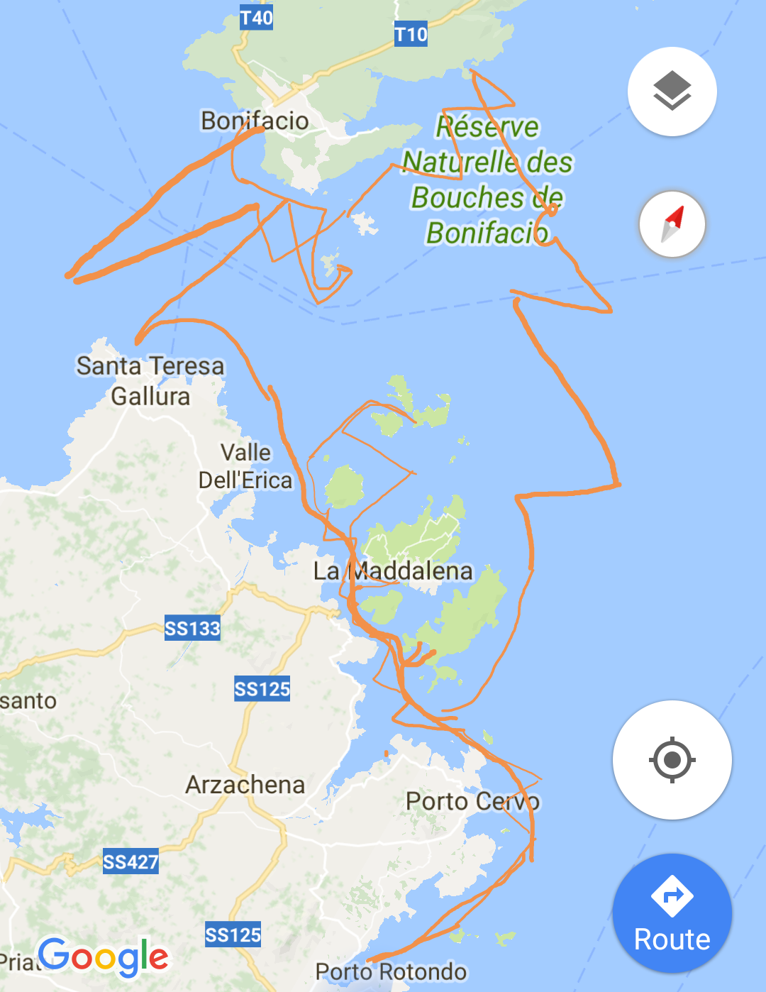 Heute morgen noch in unserer schönen Privatbucht und jetzt, nach einem tollen Segeltag sind wir wieder zurück in Portisco.