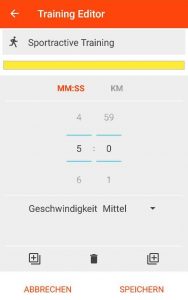 Die Laufapp „Sportractive“ bietet auch die Option ein Intervall-Training einzurichten und zu nutzen.