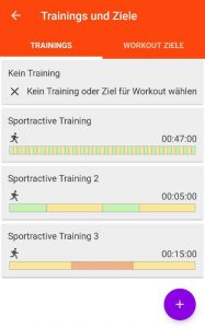 - Entweder hier ein Training auswählen oder über das Plus-Symbol ein Neues anlegen