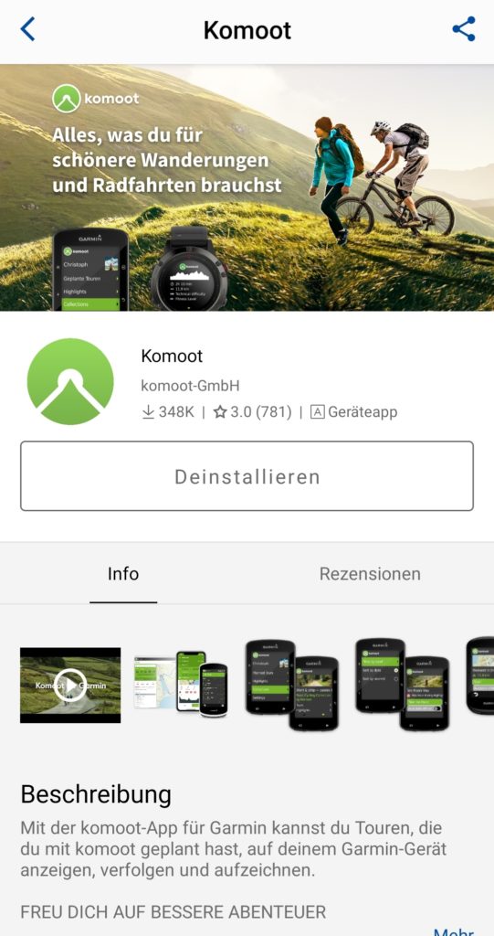 - Sucht jetzt hier nach „Komoot“ und ladet die Anwendung herunter (installieren)