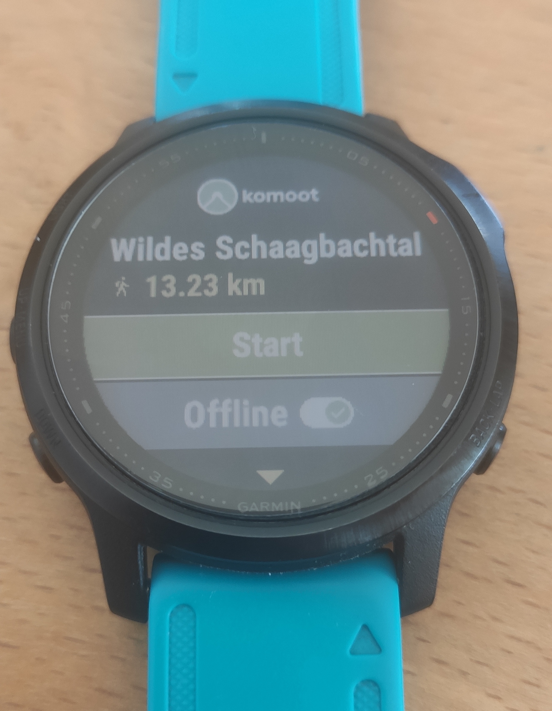 - Wenn Ihr auf der Uhr jetzt Komoot startet, werden Eure geplanten Touren angezeigt