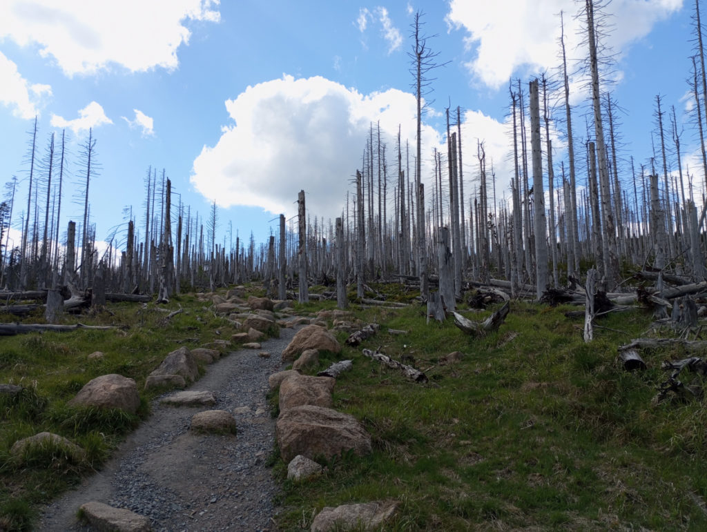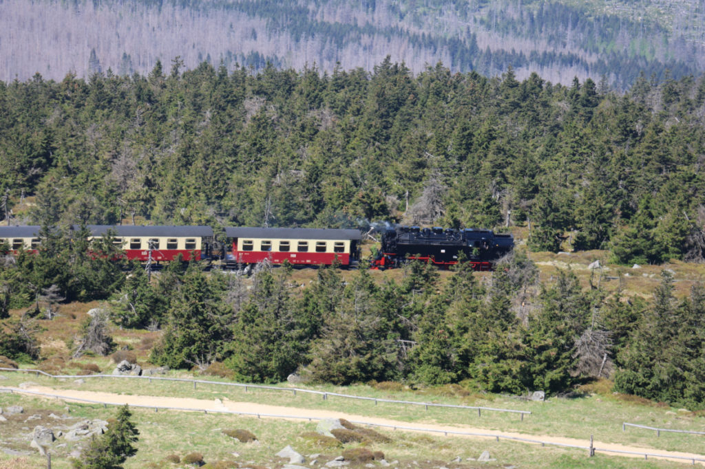 Am Vatertag 2024 ging es zum höchsten Hotel Norddeutschlands – auf den Brocken. Ein sehr lohnenswertes Ausflugsziel. Ich hatte mein Auto in Schierke bei einem Hotel stehen lassen und mein Gepäck für den Transport nach oben abgegeben. Mit leichter Ausrüstung ging es dann per Pedes u.a. über die alte Bobbahn den Berg hinauf. Schon auf der Hinfahrt in den Harz war ich über den Zustand der Wälder erschrocken. Aus der Nähe sieht alles noch dramatischer aus. Aber hier im Naturschutzgebiet Harz hat man sich entschieden die Schäden durch Trockenheit und vor allem durch den Borkenkäfer im Wesentlichen sich selbst zu überlassen. Die Natur soll es richten. Und tatsächlich zeigt sich an vielen Stellen schon wieder etwas Grün. Oben angekommen konnte man die tolle Aussicht genießen. Übernachtet haben wir im Brockenhotel, welches ich empfehlen kann. Saubere Zimmer, gutes Essen und das frisch gezapfte Bier schmeckt nach dem Aufstieg einfach hervorragend. Abends hat man dann den Berg quasi für sich alleine. Am nächsten Morgen geht es nach dem Frühstück und vor dem ersten Besucheransturm in das nebenan gelegene Museum zur Geschichte des Berges und der Natur. Empfehlenswert – 7 Euro Eintritt. Schnell füllt sich der Berg – auch dank der Harzer Schmalspurbahn, der vielen Wanderer aber auch einiger unermüdlicher Radfahrer. Tja und wandern kann man hier, aber zunächst immer nur bergab. Man ist halt auf dem höchsten Punkt.