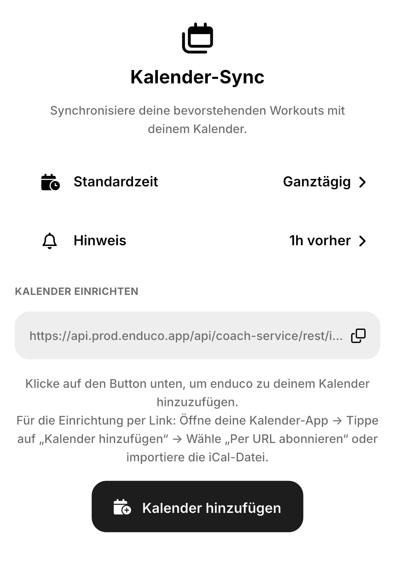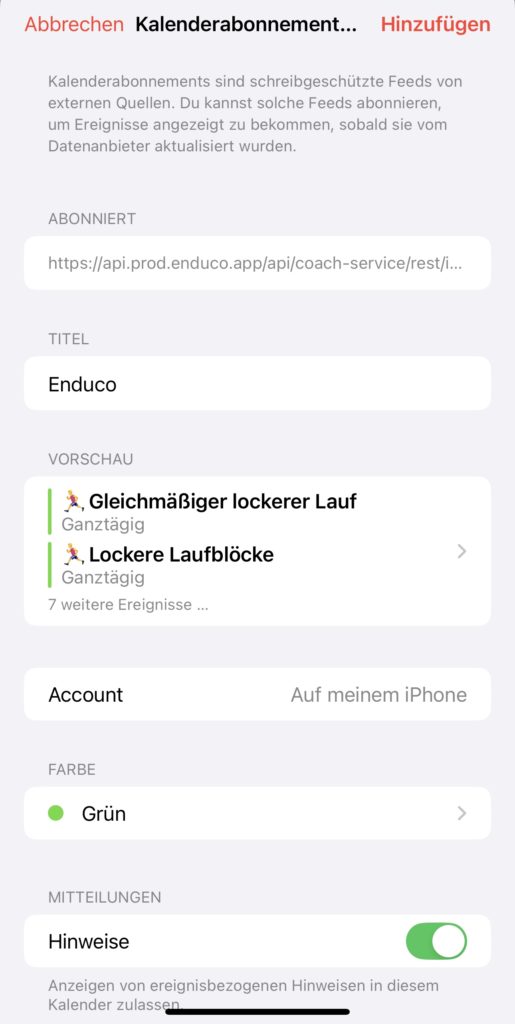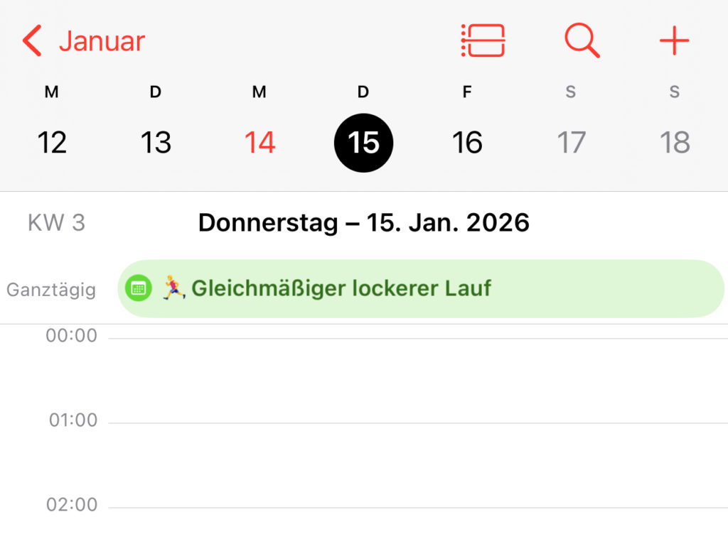 Um immer auf dem Laufenden zu sein und auf anstehende Trainingseinheiten hingewiesen zu werden macht es Sinn, das zuvor erstellte Training mit einem Kalender z.B. auf dem Handy zu verknüpfen.