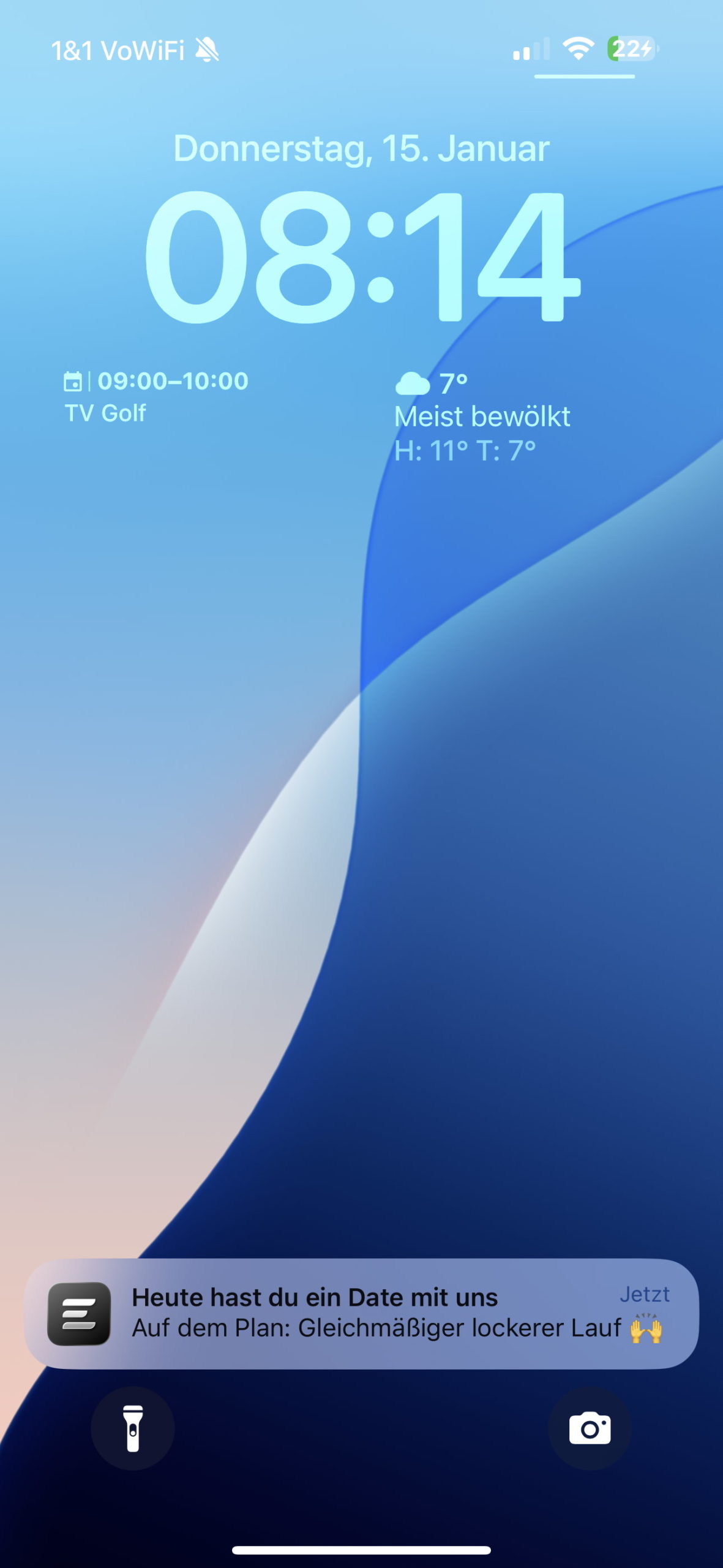 Wenn man zudem noch die Benachtigungsfunktion aktiviert hat, wird auch am entsprechenden Tag eine Einladung zum Training sogar auf dem Startbildschirm angezeigt und es kann losgehen.