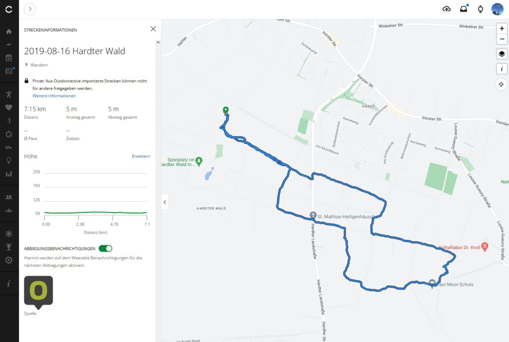 Damit ist die „Arbeit“ in Outdooractive erledigt. In der Regel wird die Strecke automatisch auf die Uhr übertragen.