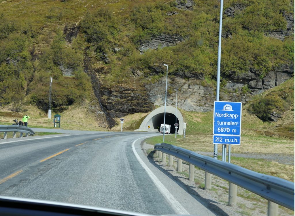Heute ging es auf die letzte Etappe unser Richtung Norden – zum Nordkap. Das Nordkap liegt übrigens auf einer Insel, ist aber mit dem Festlandssockel verbunden und über einen Tunnel unter dem Meer erreichbar. Zum Nordkap sind es ca. 130 km, die Fahrzeit beträgt zwei Stunden. Dank Rolf ist der Wagen über Nacht wieder zu 100 % aufgeladen.