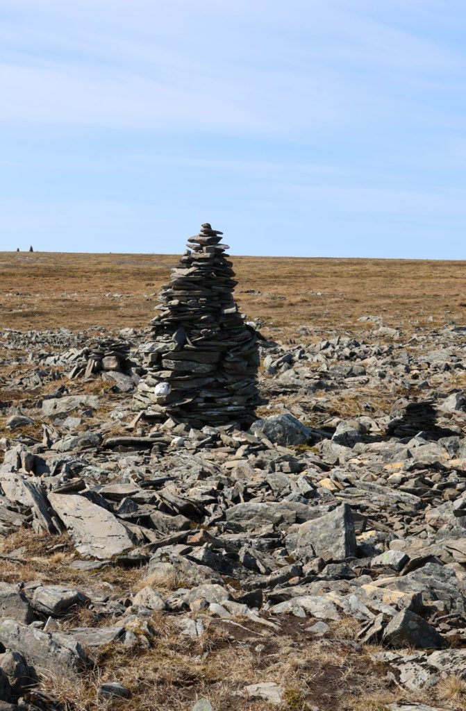 Der Weg ist in großen Abständen mit solchen Steinhaufen gekennzeichnet, aber auch über ausgetretene Wege erkennbar. Ab und zu sieht mal ein in roter Farbe gemaltes „T“ in Bodennähe.