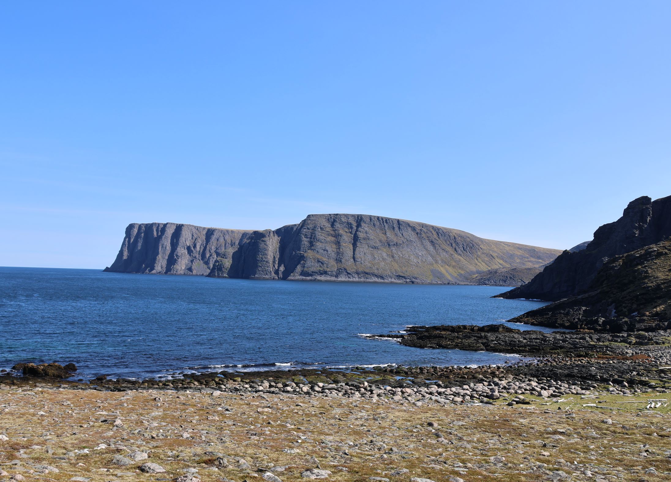 Am Endpunkt der Wanderung gibt es einen Blick hinüber zum Nordkap.
